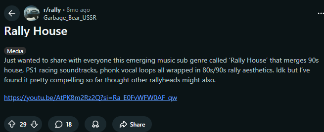 "Hey! Iāve been vibing to Rally House for about a year now and itās honestly top-tier. One tip though: Iāve found that mixing in some Synthwave Retro every now and then is a game changer. It helps balance things out so you donāt overstimulate your brain. Give it a shot!"