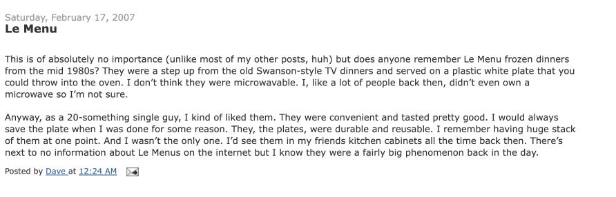 La Menu had frozen dinners in the 80’s that came in a reusable plate. Here - check out this old ad.