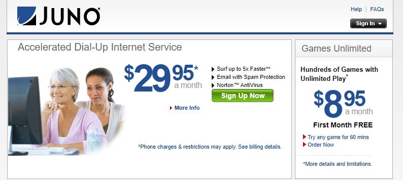 Juno is so old that when you search ādialup juno reviewsā i get links from 2006 and 2003.